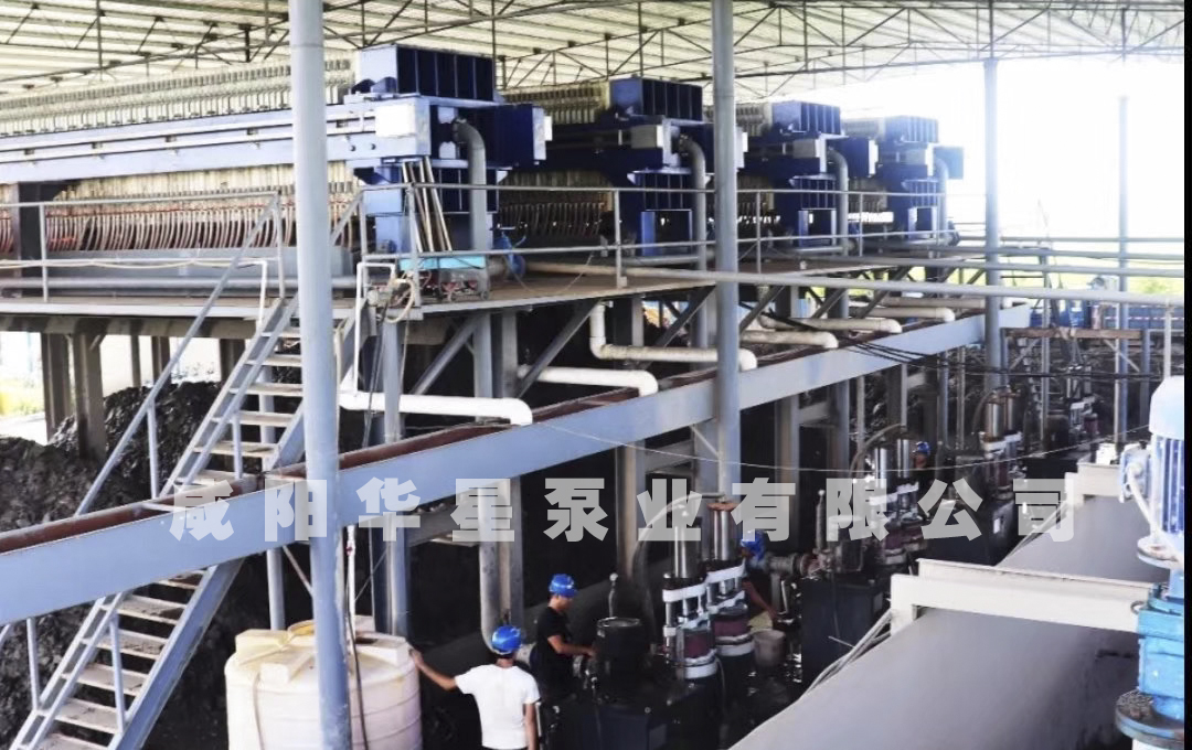 1、進料階段:開始進料時壓濾機濾室是空的需要快速充滿物料。(YBH泵大流量進料快速充滿壓濾機)